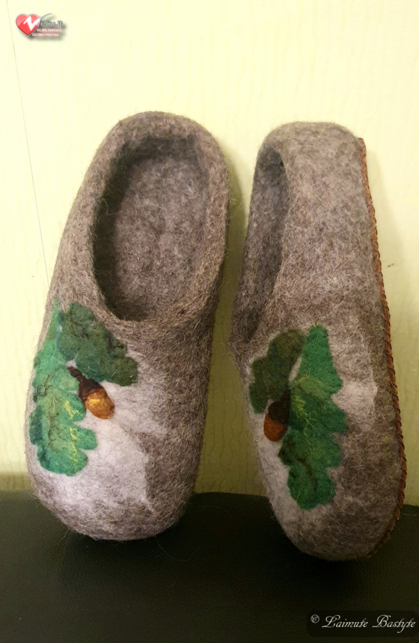 Veltos vyriškos šlepetės iš lietuviškos natūralios vilnos karšinio.Dvigubas padas apsiūtas oda.Labai šiltos,Turi visas natūralios vilnos unikalias savybes.Tinka traumuotoms kojų pėdų problemoms lengvinti(ataugos,sanariai,po operaciniai randai,galūnių kraujotakos nepakankamumas,prakaito mažinimui, nuovargio raminimas ir kt.)Antibakateriškos,vėdinamos išsivalo.Maksimalus sveikatinimo efektas pasiekiamas nešiojant basomis kojomis.Kaip valyti ir skalbti pasitarti su velėja.