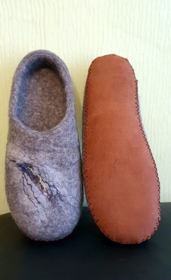 Veltos iš avių natūralios vilnos tradiciniu būdu,be jokių sintetinių skysčių. Veltinis storas.Padai tvirtai apsiūi raguočių oda, Šilti lengvi ,komfortas sanarių,ataugų,sutrikusios kraujotakos,po chirurginių operacijų išvargintoms kojoms. Dydis 45-46+